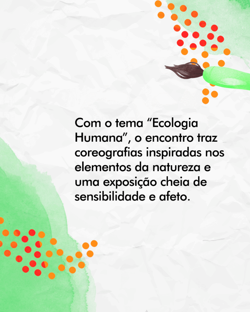 Com o tema “Ecologia Humana”, o encontro traz coreografias inspiradas nos elementos da natureza e uma exposição cheia de sensibilidade e afeto.